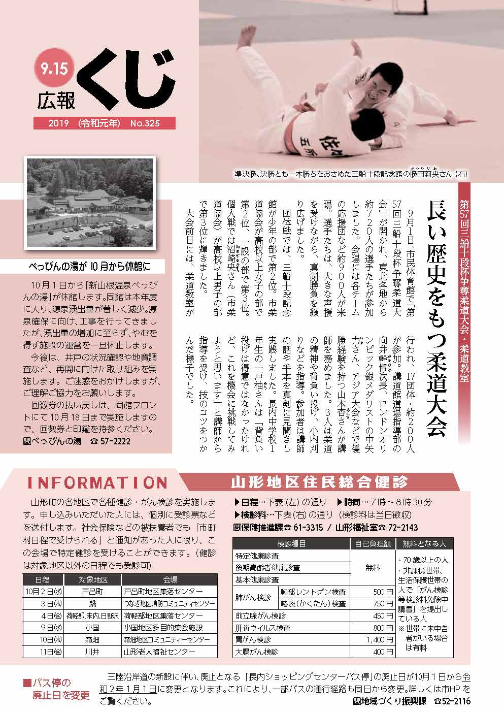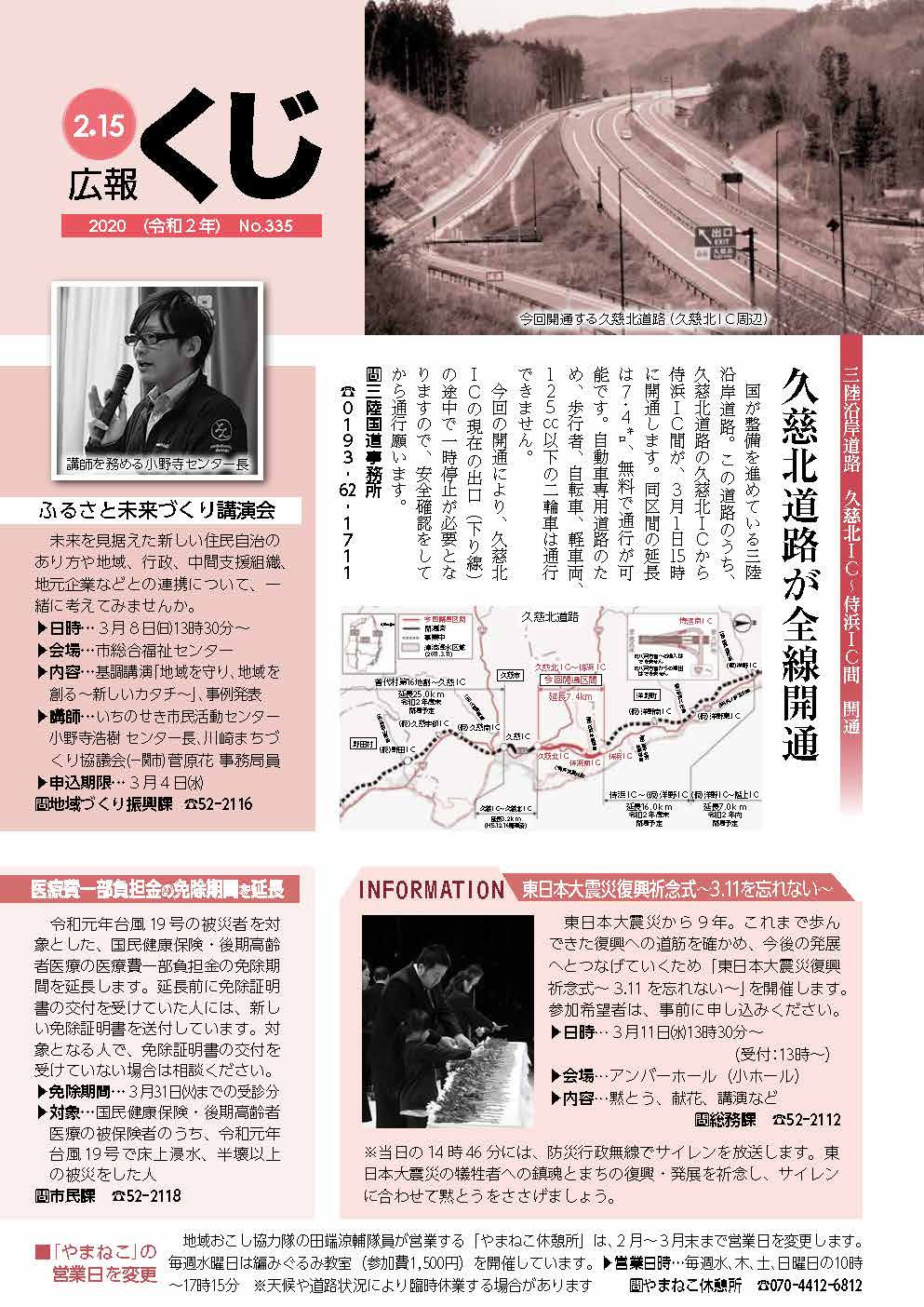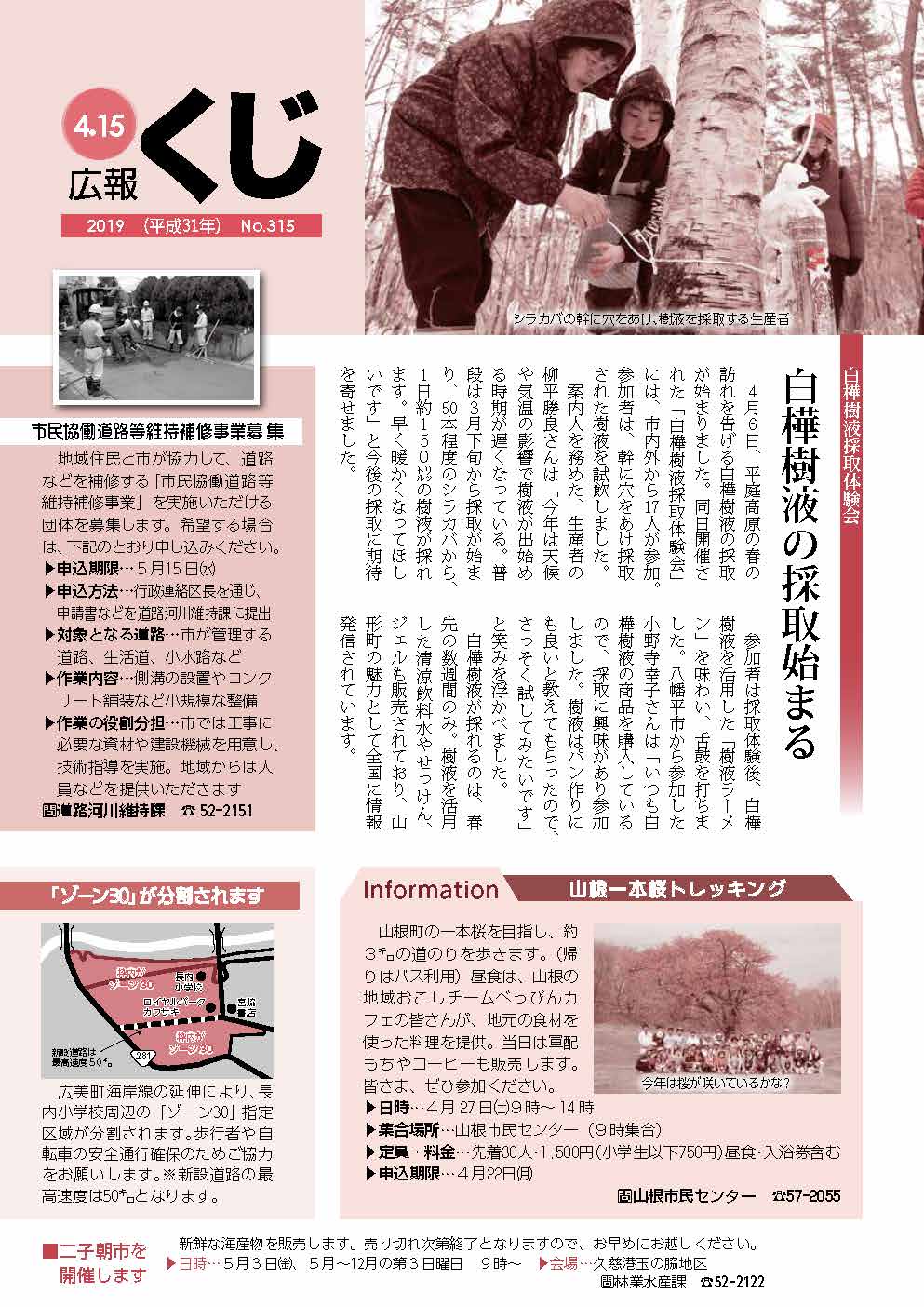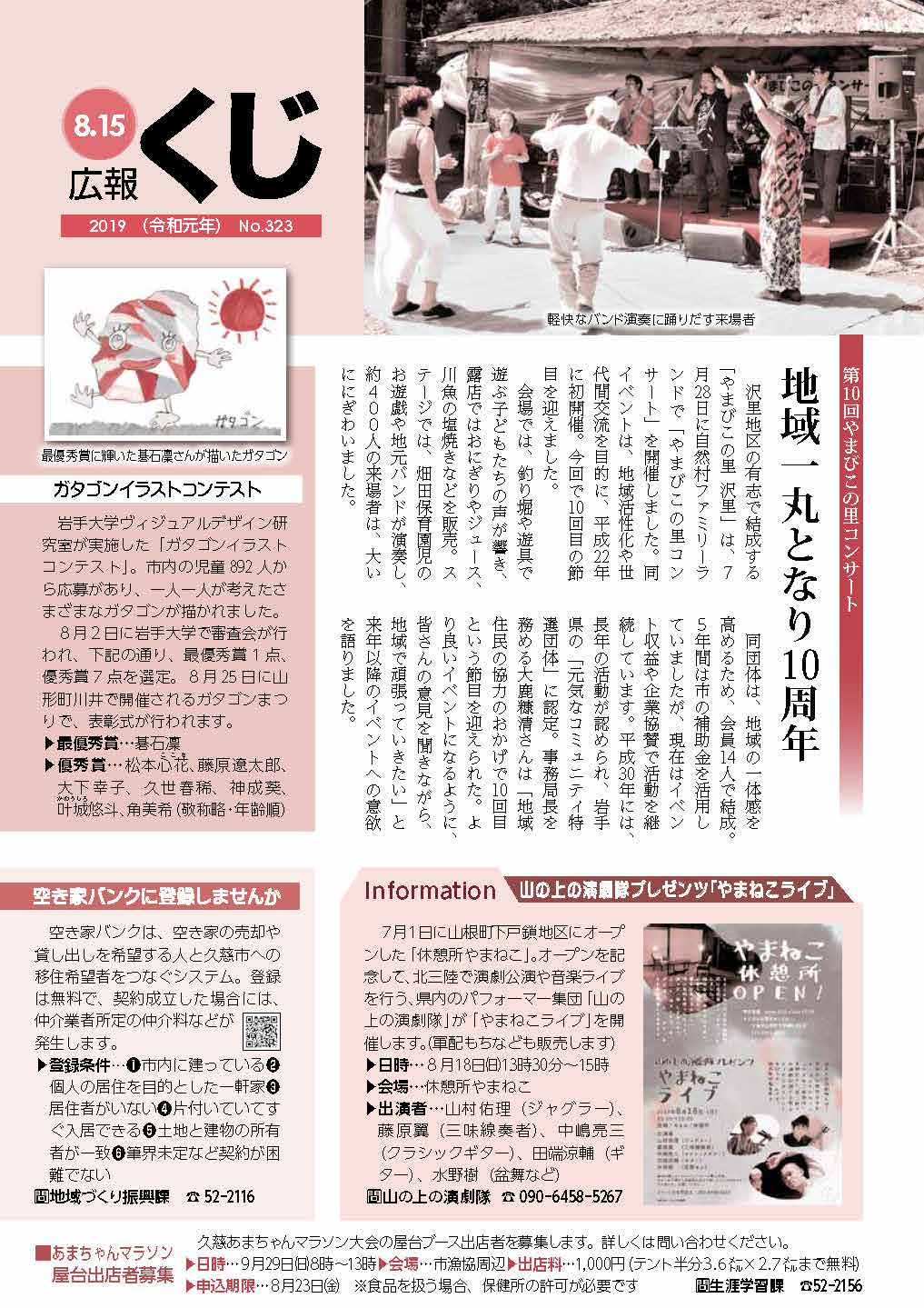 「広報くじ」は、本号を毎月1日、お知らせ号を毎月15日に発行します。1日、15日が土日・祝日の場合は、発行日を繰り上げます。行政連絡区長を通じて、市内全域に配布します。