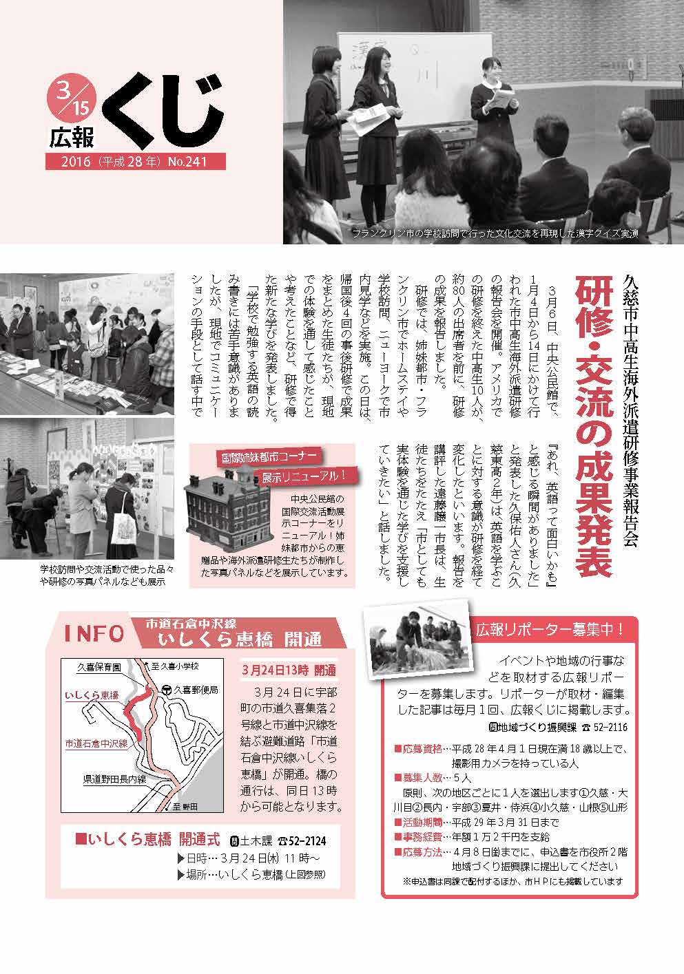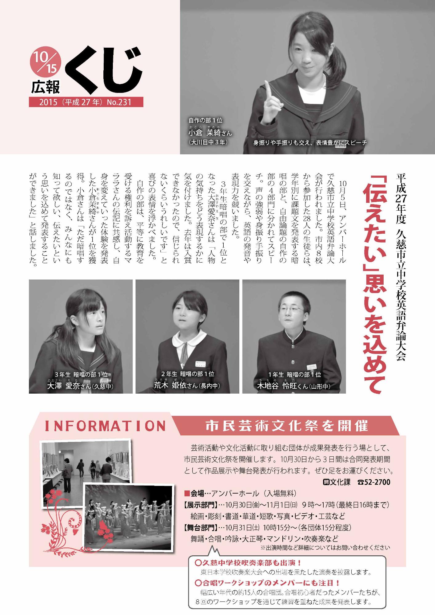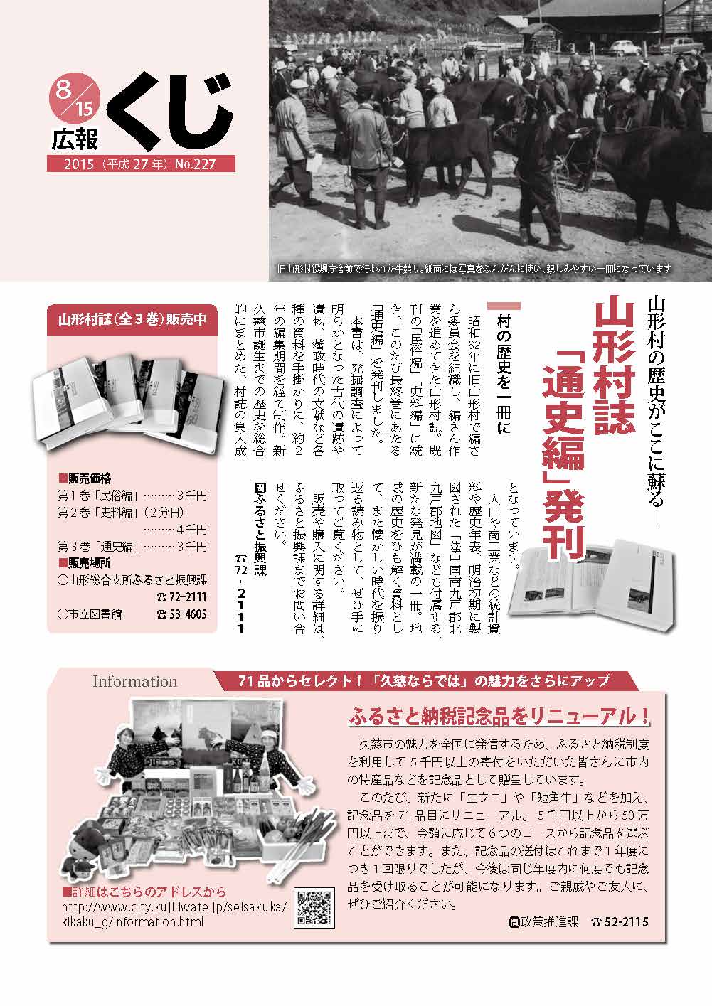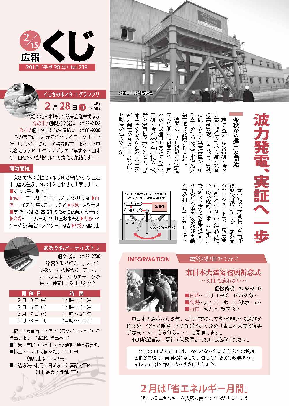「広報くじ」は、本号を毎月1日、お知らせ号を毎月15日に発行します。1日、15日が土日・祝日の場合は、発行日を繰り上げます。行政連絡区長を通じて、市内全域に配布します。