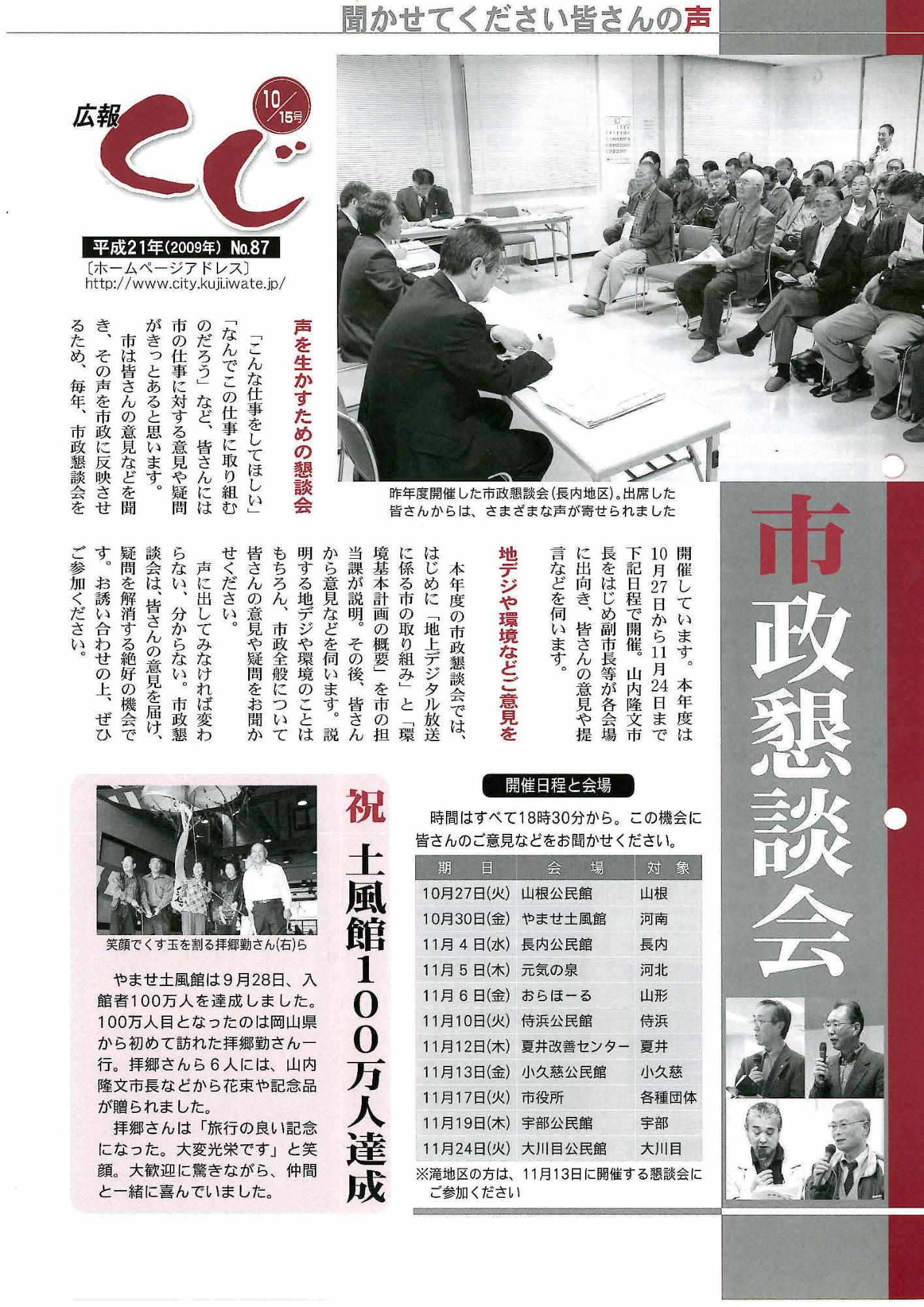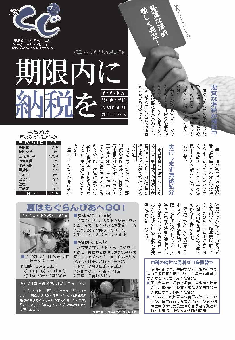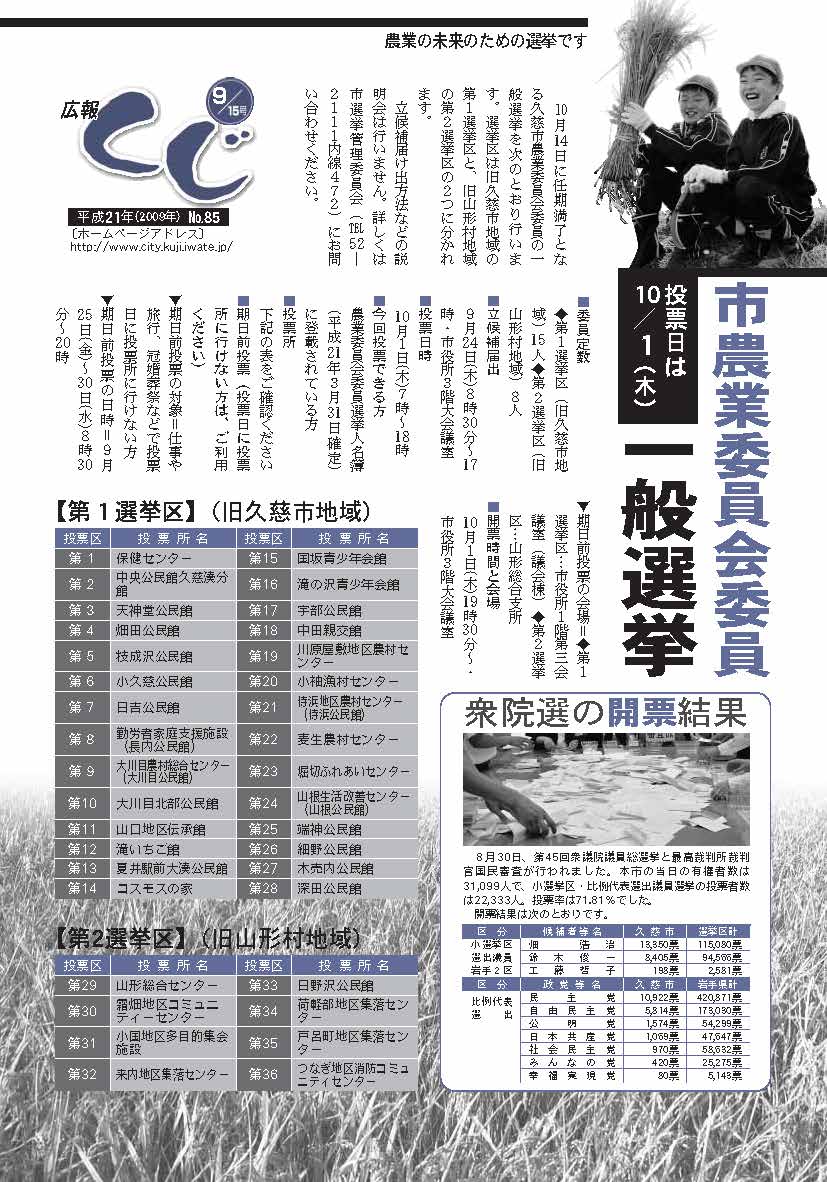 「広報くじ」は、本号を毎月1日、お知らせ号を毎月15日に発行します。1日、15日が土日・祝日の場合は、発行日を繰り上げます。行政連絡区長を通じて、市内全域に配布します。