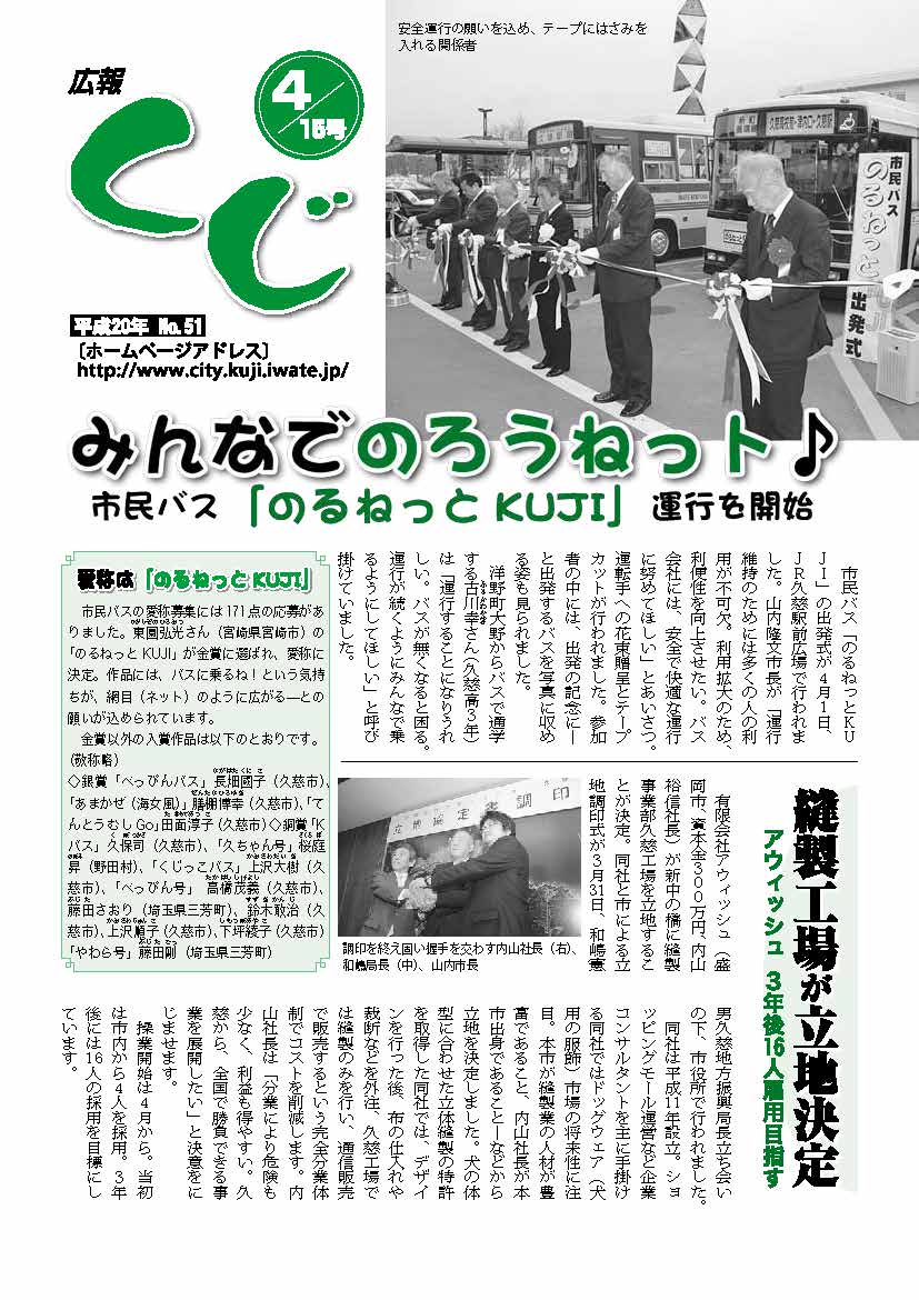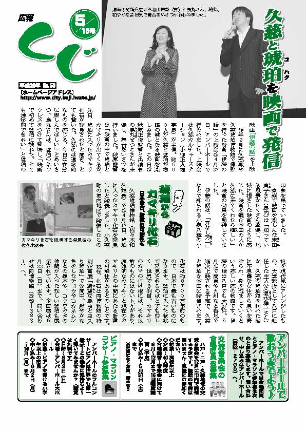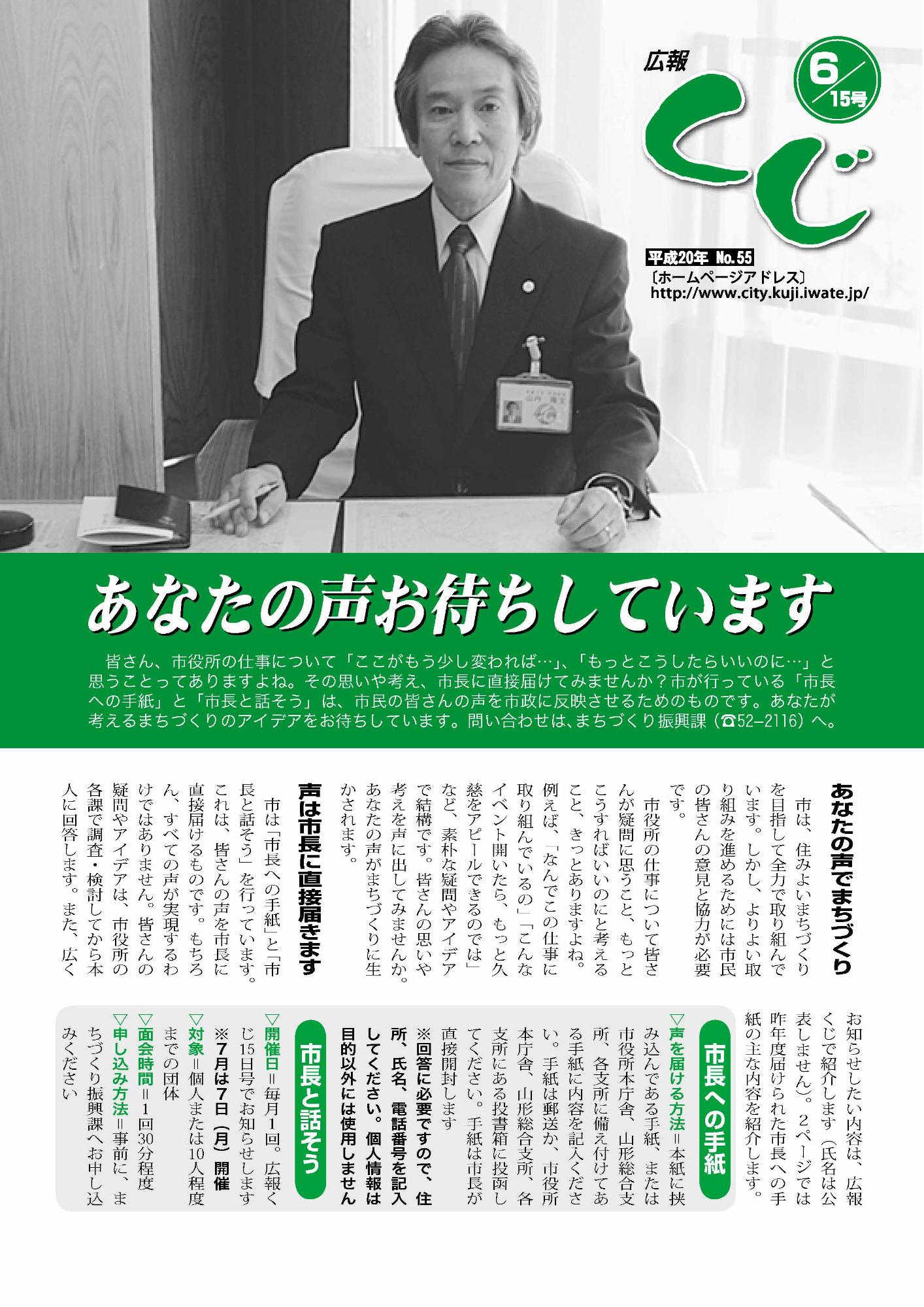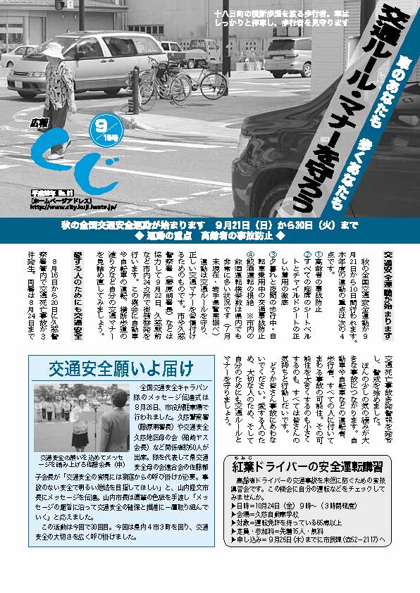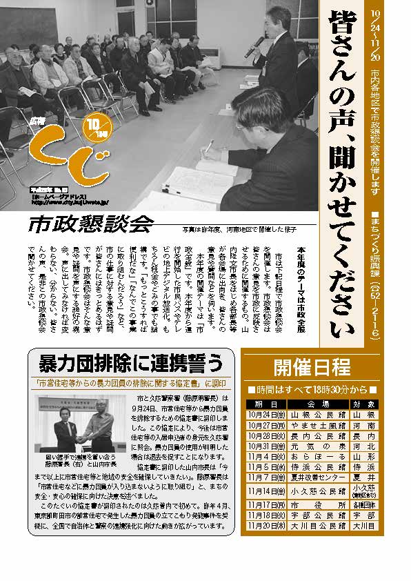 「広報くじ」は、本号を毎月1日、お知らせ号を毎月15日に発行します。1日、15日が土日・祝日の場合は、発行日を繰り上げます。行政連絡区長を通じて、市内全域に配布します。