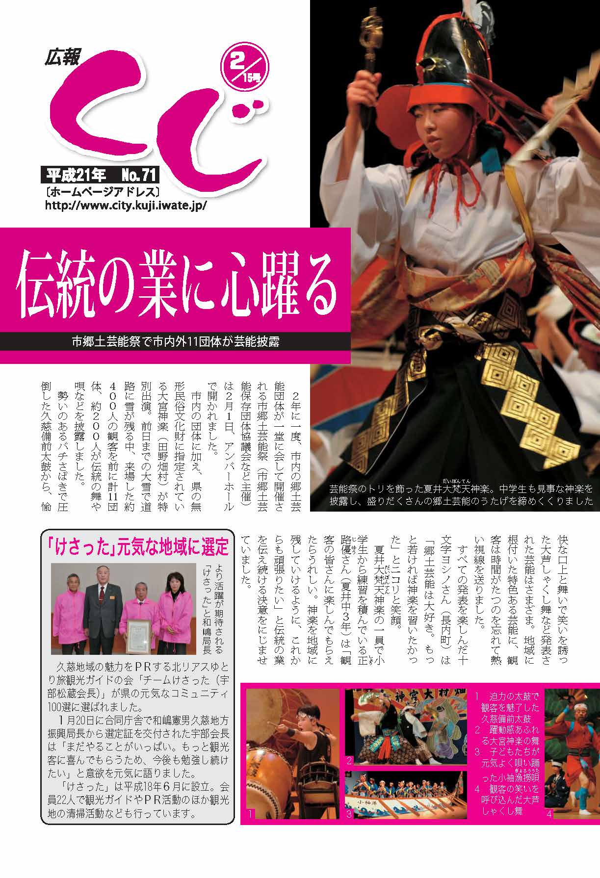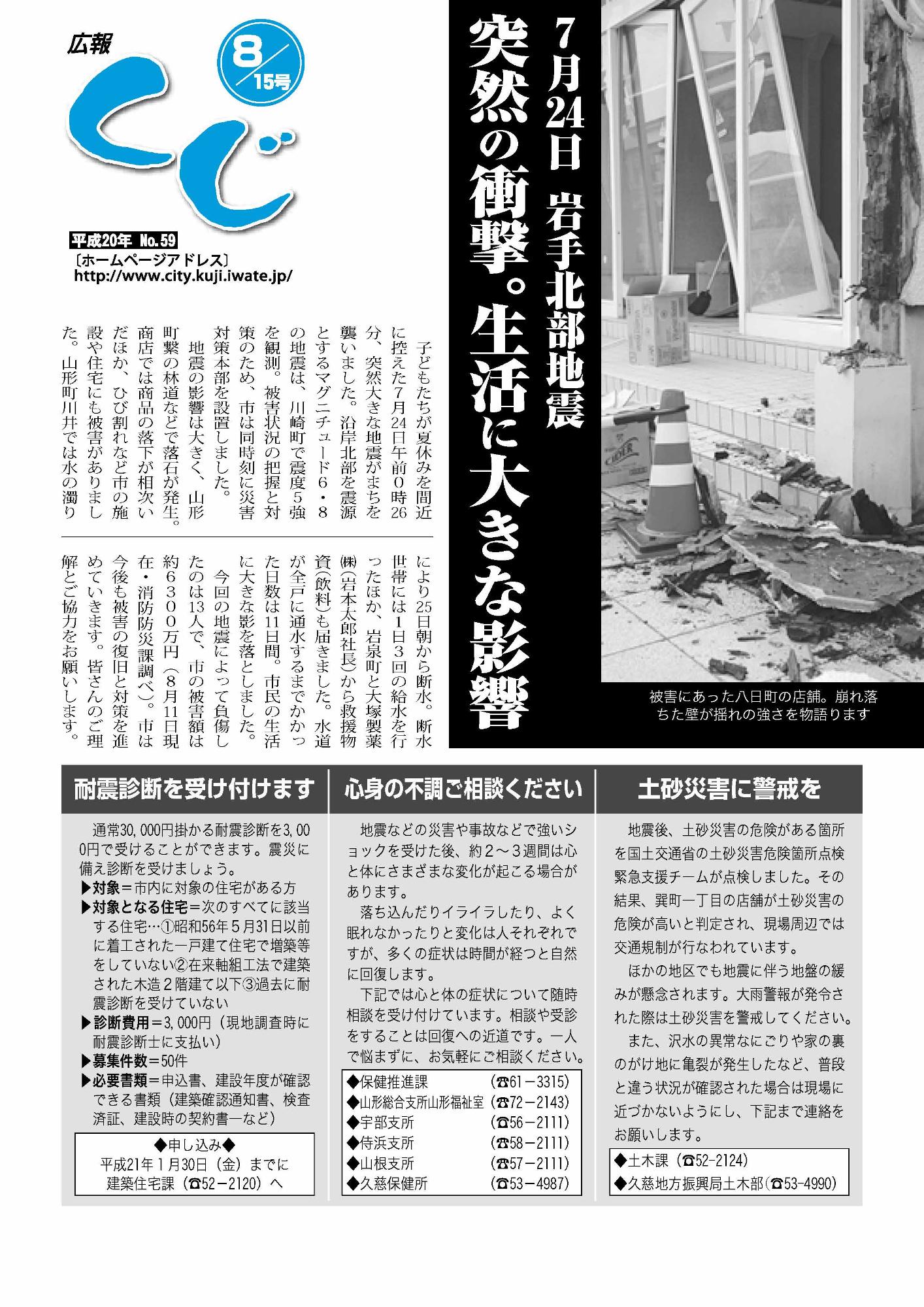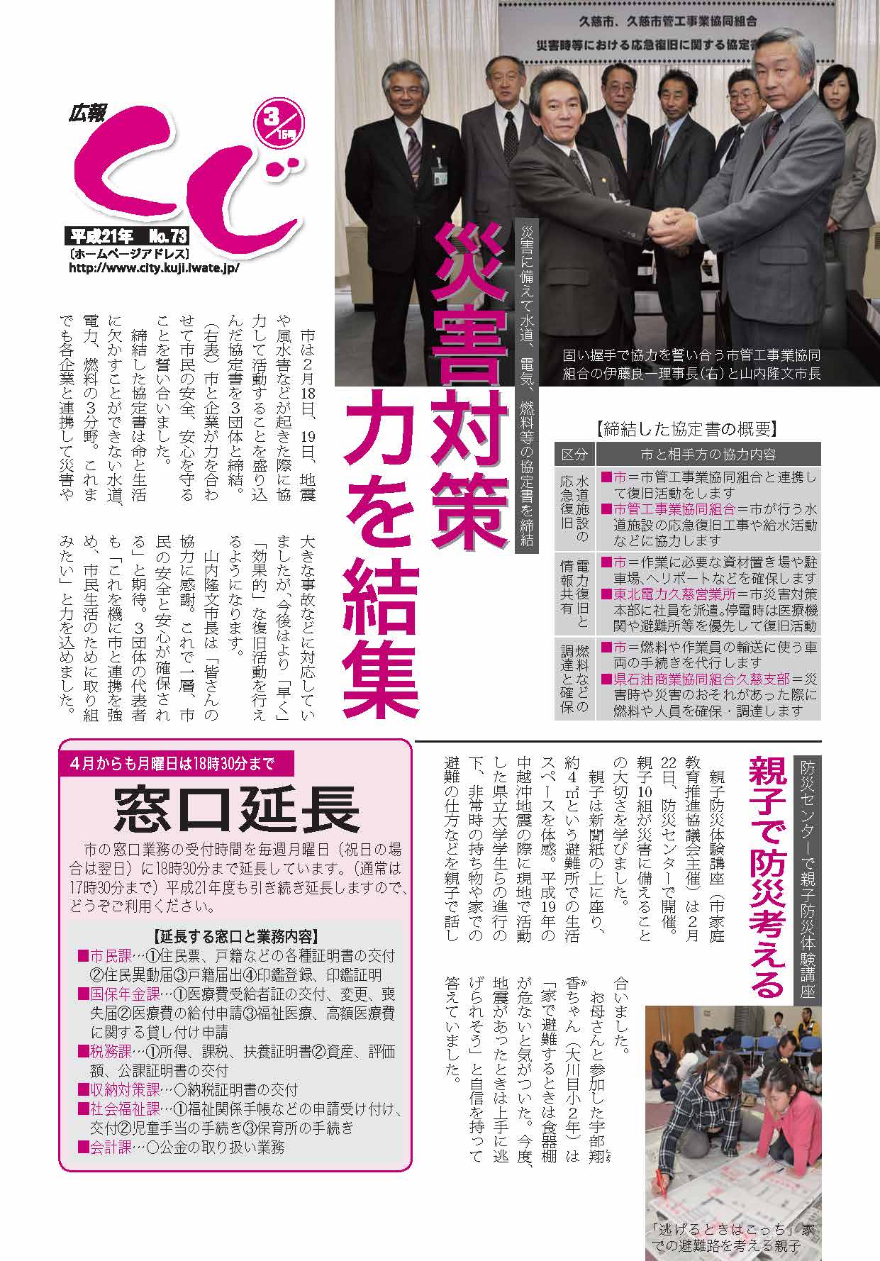 「広報くじ」は、本号を毎月1日、お知らせ号を毎月15日に発行します。1日、15日が土日・祝日の場合は、発行日を繰り上げます。行政連絡区長を通じて、市内全域に配布します。
