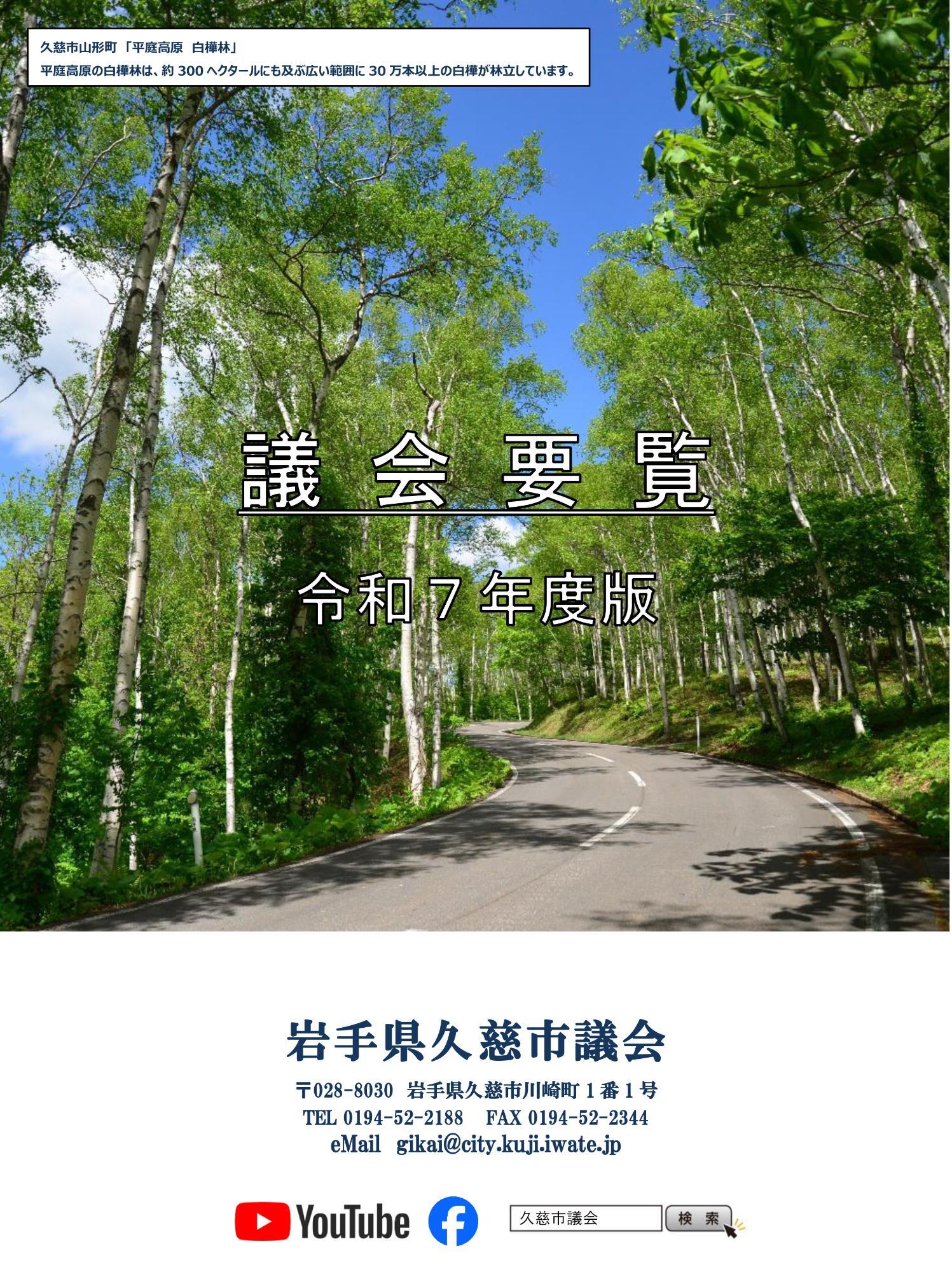 議会要覧 更新日:2025年06月12日 ページID : 4902 久慈市議会では、議会の概要等を掲載した「議会要覧」を発行し、市議会に関する情報公開に努めています。 詳細は添付ファイルをご覧ください。 令和7年度議会要覧(PDFファイル:2MB)