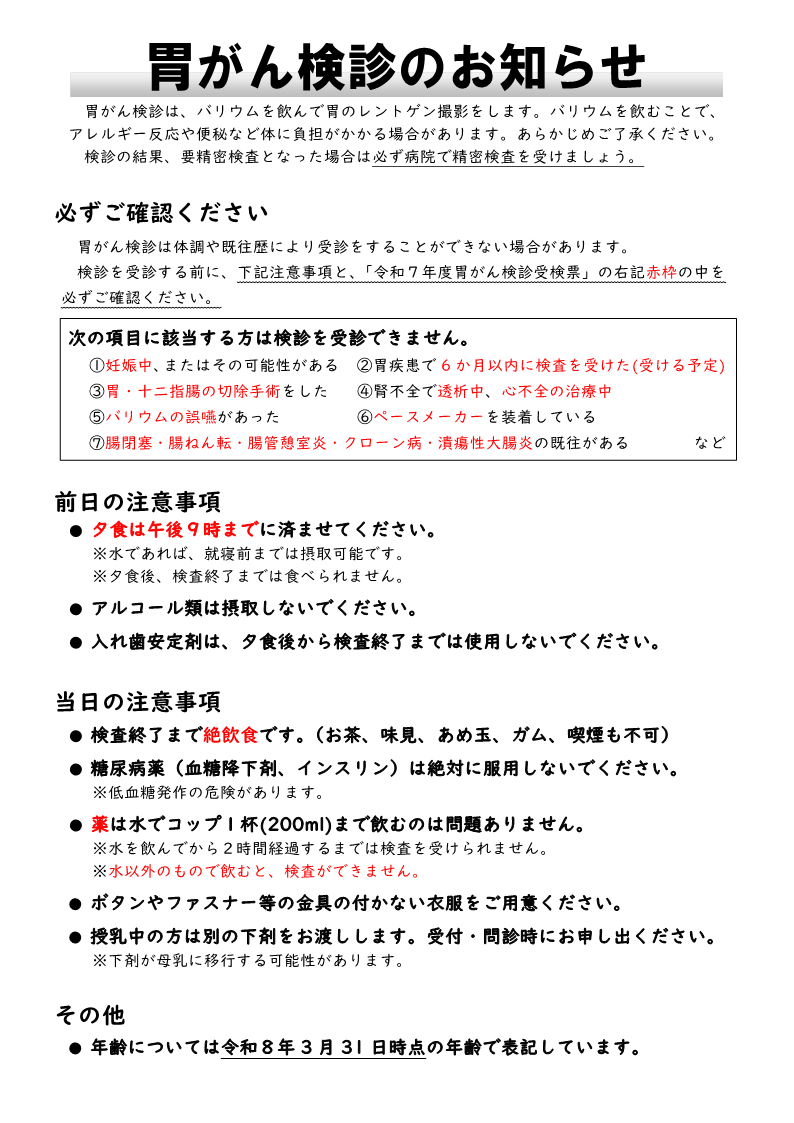 令和7年度胃がん検診追加日程のお知らせ