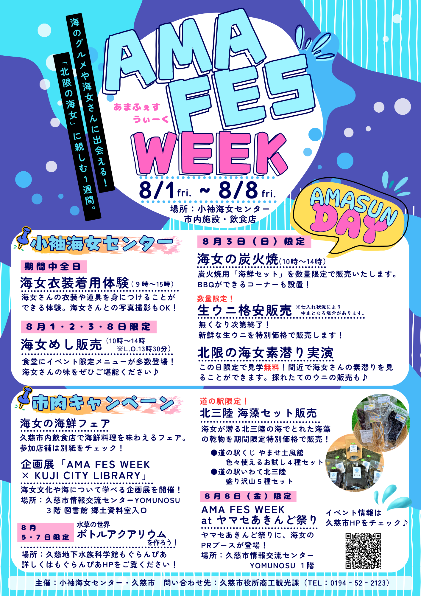 ・企画展「AMA FES WEEK×KUJI CITY LIBRARY」(久慈市情報交流センターYOMUNOSU・図書館)・・・海女文化や海について学べる企画展。