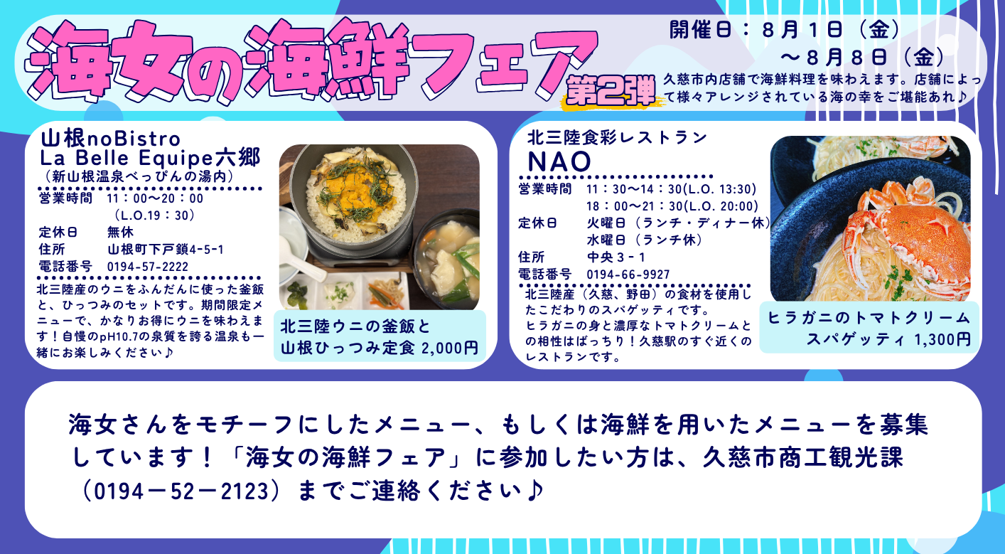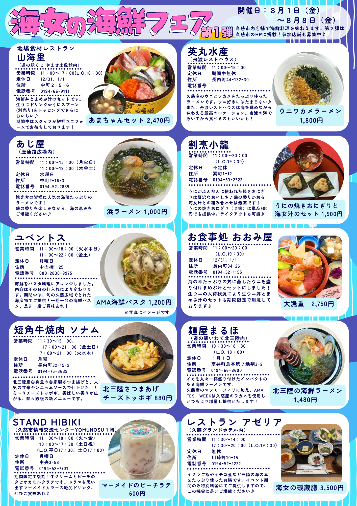 ・海女の海鮮フェア・・・市内飲食店で海鮮や海女さんをイメージした料理を味わえるフェア。