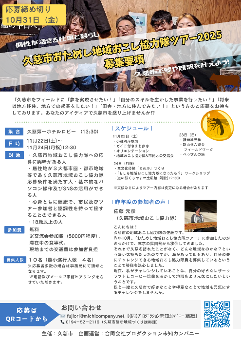 【お問い合わせ】 合同会社プロダクション未知カンパニー 担当:藤織(久慈市移住コーディネーター) メールアドレス:fujiori@michicompany.net